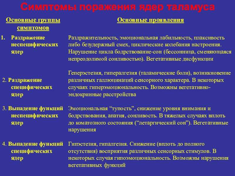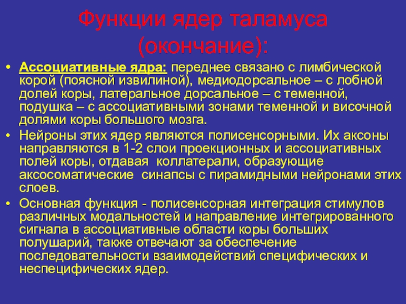 Ассоциативные ядра: переднее, медиодорсальное, латеральное дорсальное