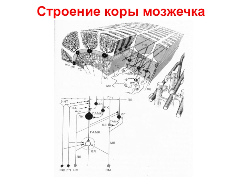 типов нейронов: клетки Пуркинье, клетки зерна, корзинчатые клетки, клетки Гольджи