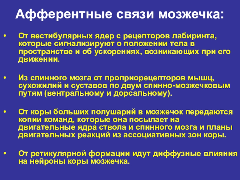 от спинного, среднего мозга, мозжечка, базальных ганглиев головного мозга.