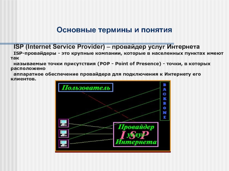 называемые точки присутствия (POP - Point of Presence) - точки, в которых расположено