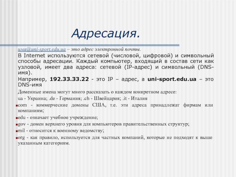 цифровой) и символьный способы адресации. Каждый компьютер, входящий в состав