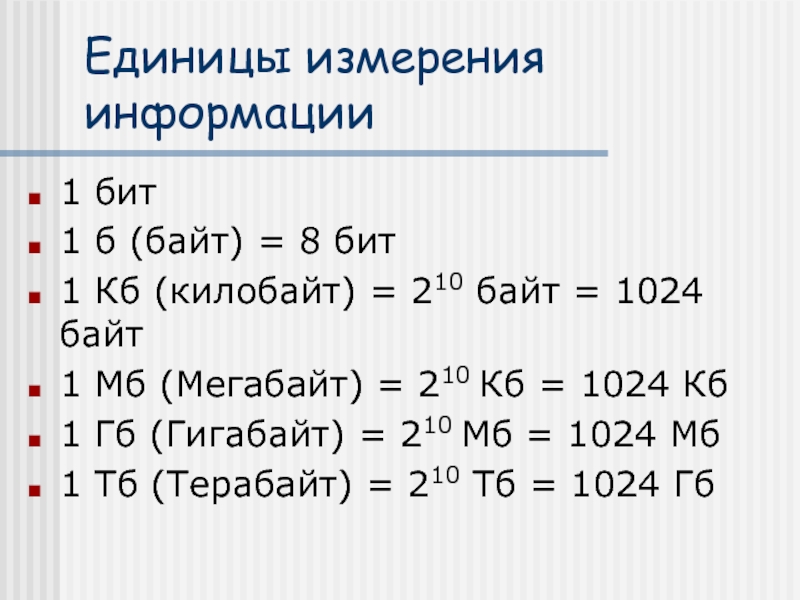 1 Тб (Терабайт) = 210 Тб = 1024 Гб