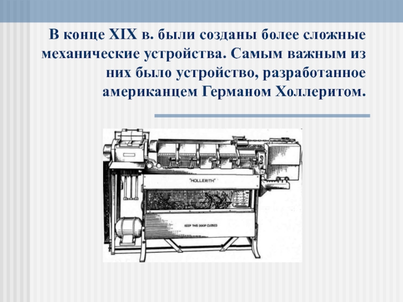Слайд 11В конце XIX в. были созданы более сложные механические устройства.
