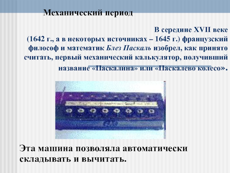 источниках – 1645 г.) французский философ и математик Блез Паскаль