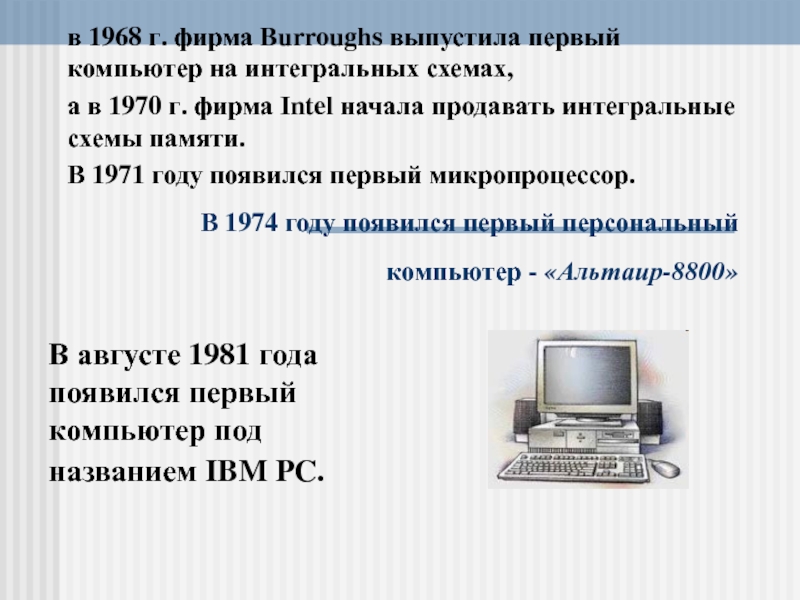 в 1968 г. фирма Burroughs выпустила первый компьютер на интегральных схемах,