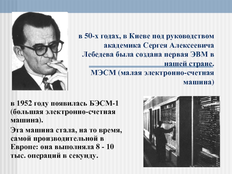в 1952 году появилась БЭСМ-1 (большая электронно-счетная машина).