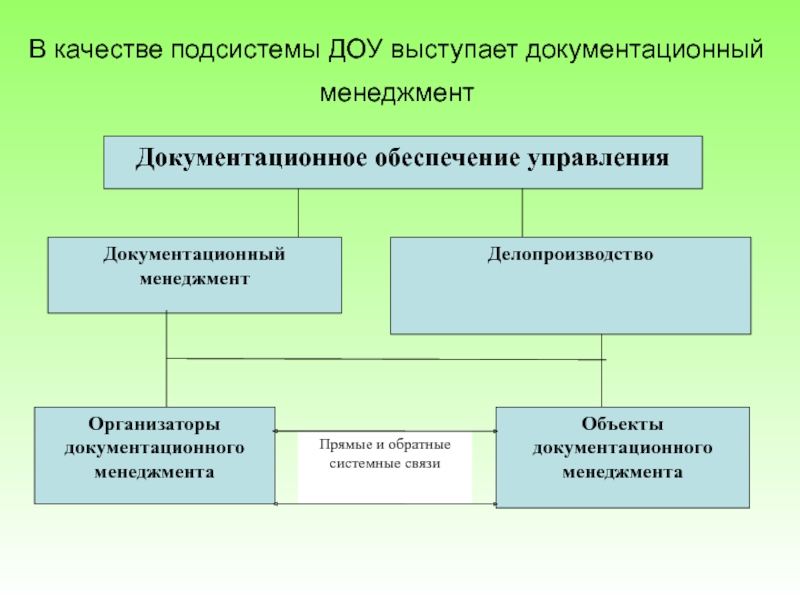 Слайд 8В качестве подсистемы ДОУ выступает документационный менеджмент