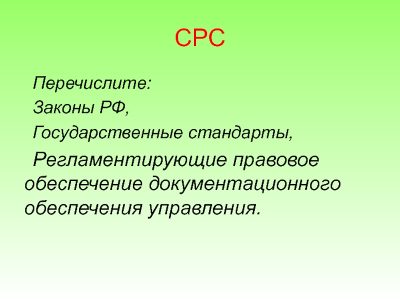 Слайд 112 вопрос. Правовое обеспечение документационного обеспечения.