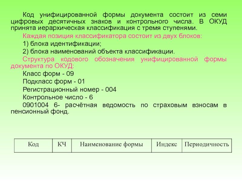 Слайд 33Код унифицированной формы документа состоит из семи цифровых десятичных знаков