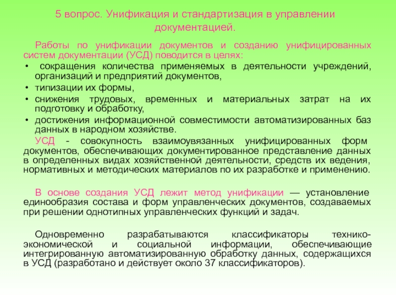 Слайд 295 вопрос. Унификация и стандартизация в управлении документацией.