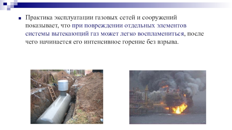 Слайд 9Практика эксплуатации газовых сетей и сооружений показывает, что при повреждении