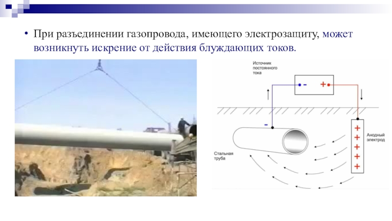 Слайд 41При разъединении газопровода, имеющего электрозащиту, может возникнуть искрение от действия