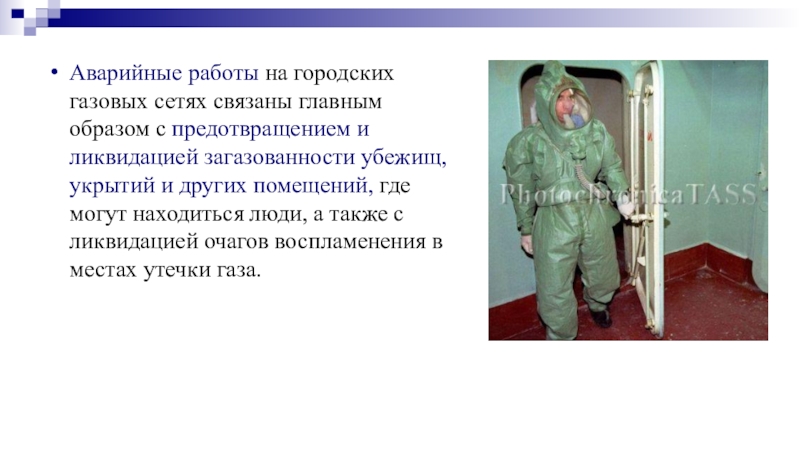 Слайд 48 Аварийные работы на системах газоснабжения выполняют специально обученные рабочие,