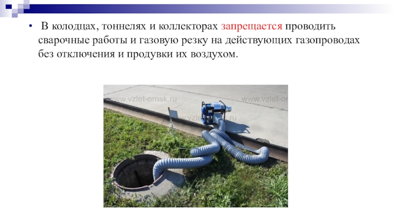 Слайд 54 В колодцах, тоннелях и коллекторах запрещается проводить сварочные работы