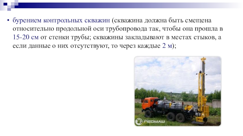 Слайд 31бурением контрольных скважин (скважина должна быть смещена относительно продольной оси
