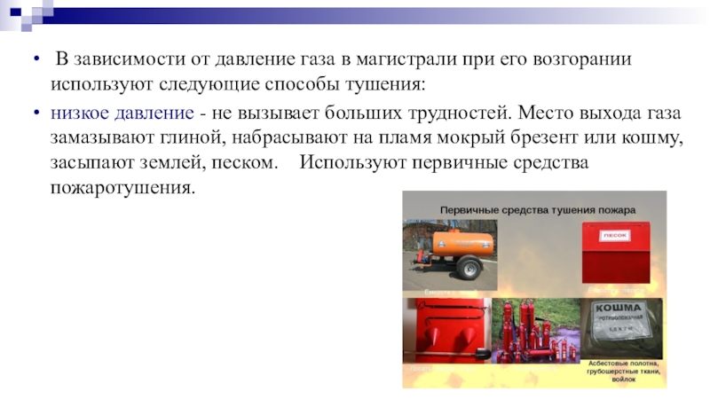 Слайд 39 Как правило, тушение пламени на газопроводах среднего и высокого