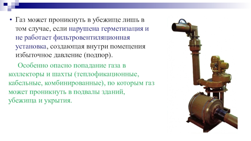 Слайд 27Газ может проникнуть в убежище лишь в том случае, если