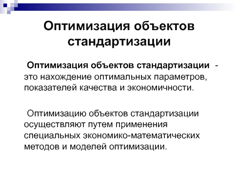 Оптимизацию объектов стандартизации осуществляют путем применения