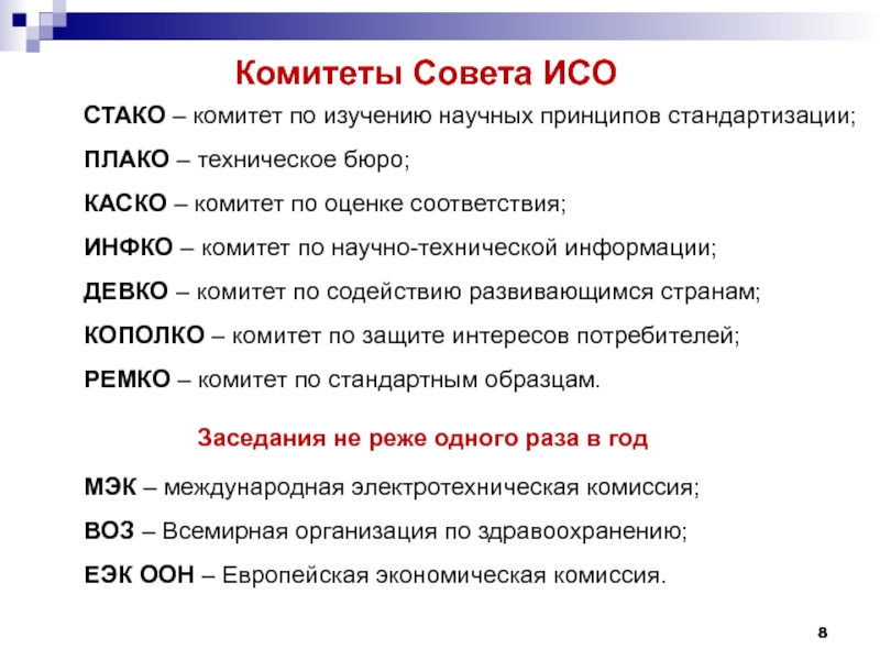 Слайд 8СТАКО – комитет по изучению научных принципов стандартизации;