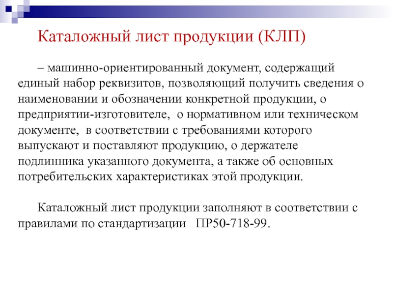 Каталожный лист продукции заполняют в соответствии с правилами по стандартизации ПР50-718-99.