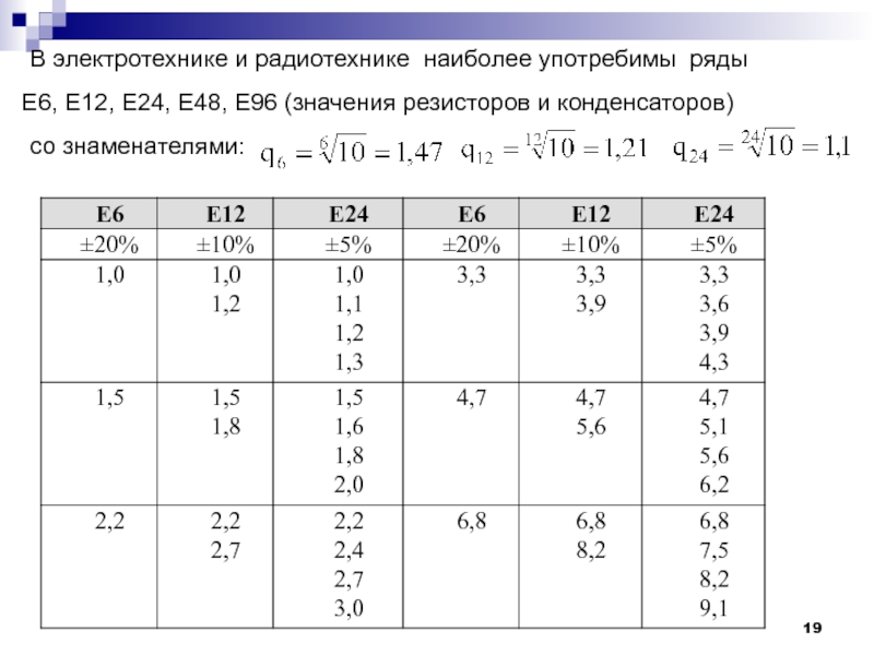 Слайд 19В электротехнике и радиотехнике наиболее употребимы ряды
