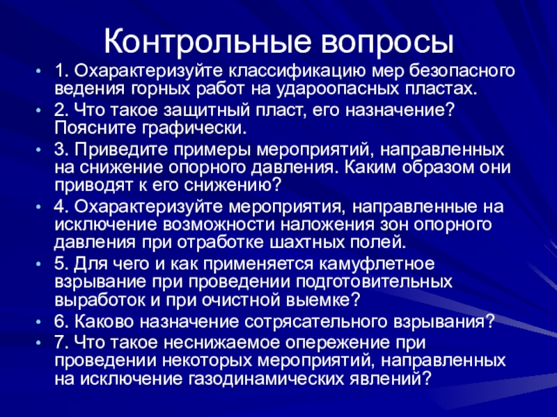 1. Охарактеризуйте классификацию мер безопасного ведения горных работ на
