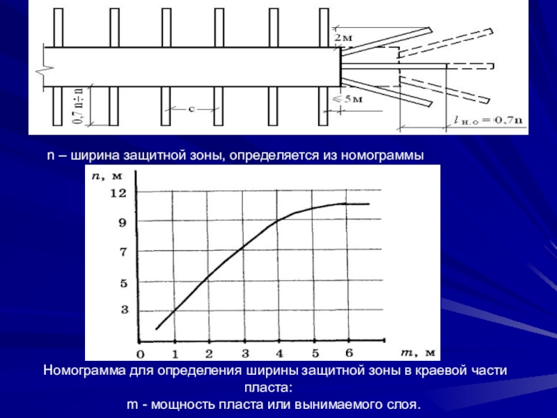 Слайд 13n – ширина защитной зоны, определяется из номограммы