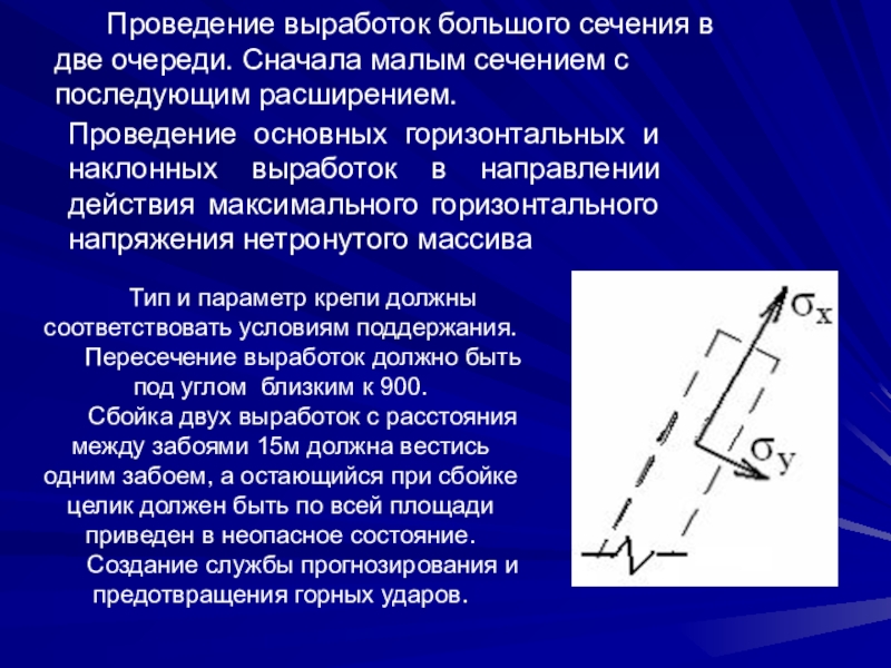 Слайд 25 Проведение выработок большого сечения в две очереди. Сначала малым