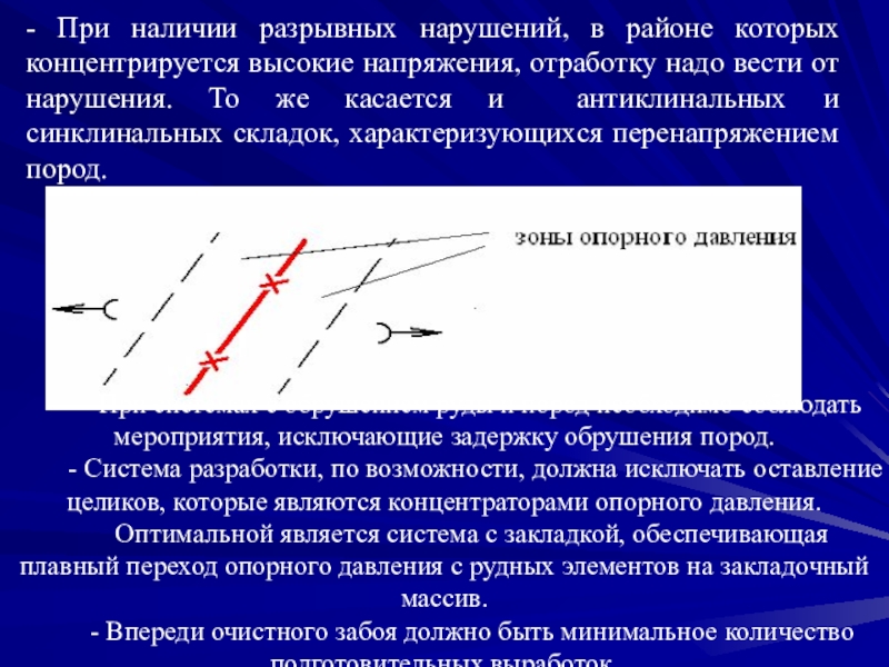- Система разработки, по возможности, должна исключать оставление целиков, которые являются концентраторами опорного давления.