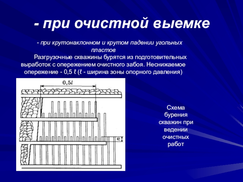 Разгрузочные скважины бурятся из подготовительных выработок с опережением очистного забоя.