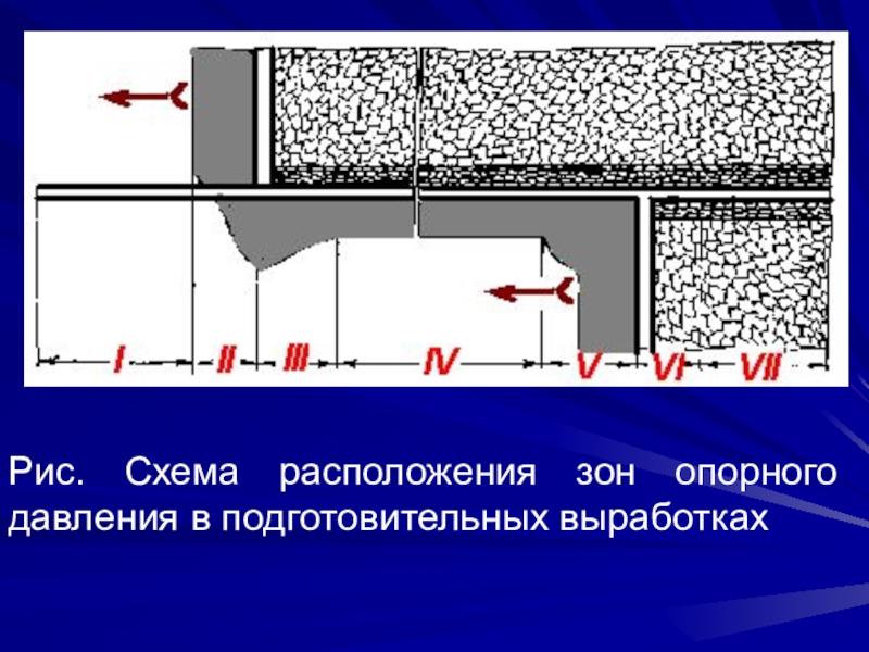 Слайд 20Рис. Схема расположения зон опорного давления в подготовительных выработках