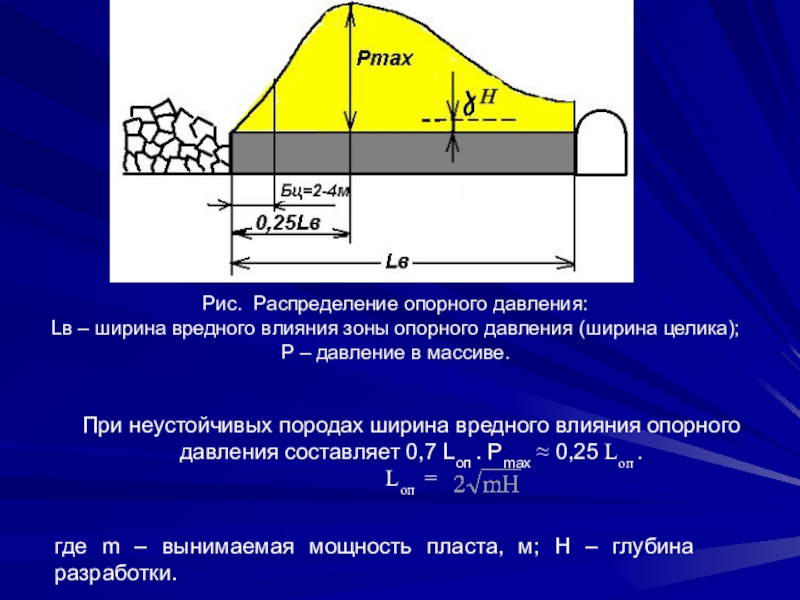 вредного влияния опорного давления составляет 0,7 Lоп . Рmax 0,25 Lоп .