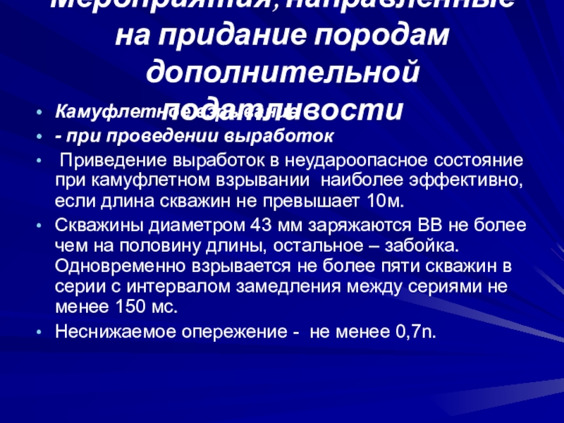 Слайд 12Мероприятия, направленные на придание породам дополнительной податливости