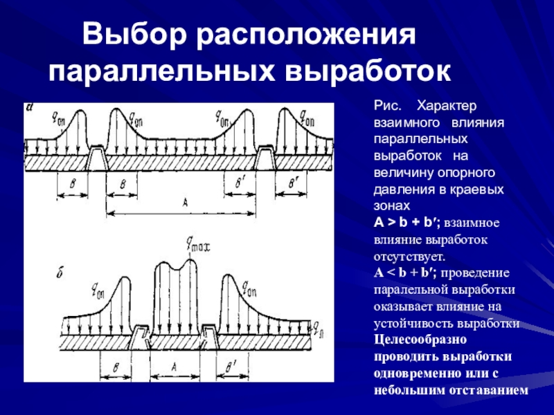 А < b + b; проведение паралельной выработки оказывает влияние на устойчивость выработки