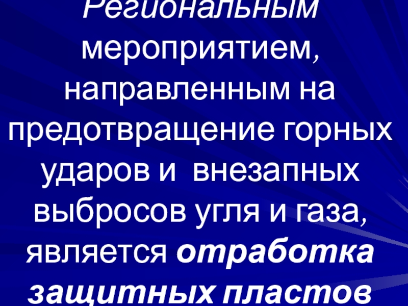 Слайд 3Региональным мероприятием, направленным на предотвращение горных ударов и внезапных выбросов