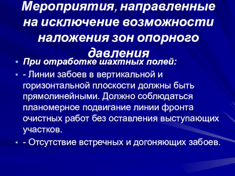 Слайд 9Мероприятия, направленные на исключение возможности наложения зон опорного давления