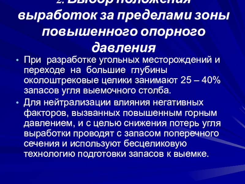 Слайд 172. Выбор положения выработок за пределами зоны повышенного опорного давления