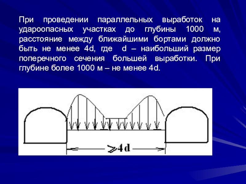 Слайд 23При проведении параллельных выработок на удароопасных участках до глубины 1000