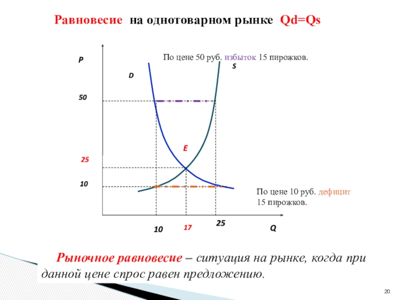 Слайд 20Равновесие на однотоварном рынке Qd=Qs