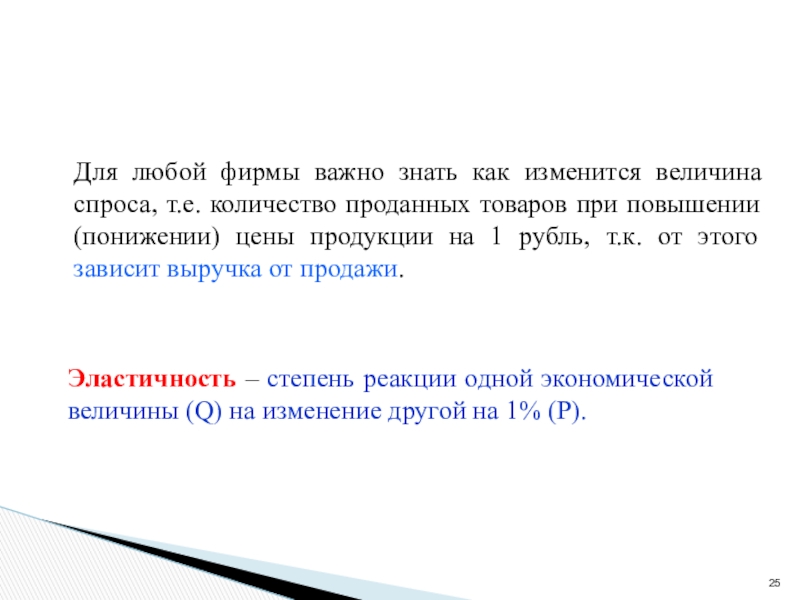 Слайд 25Для любой фирмы важно знать как изменится величина спроса, т.е.
