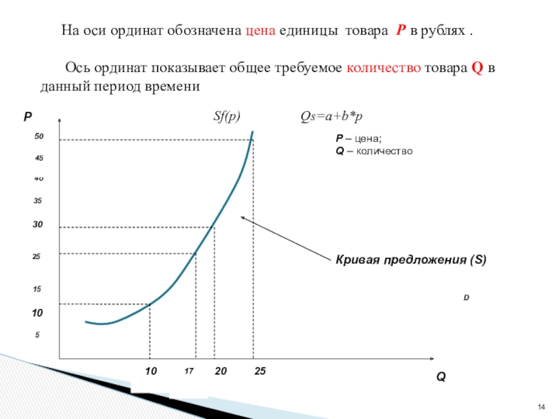 Слайд 14На оси ординат обозначена цена единицы товара Р в рублях