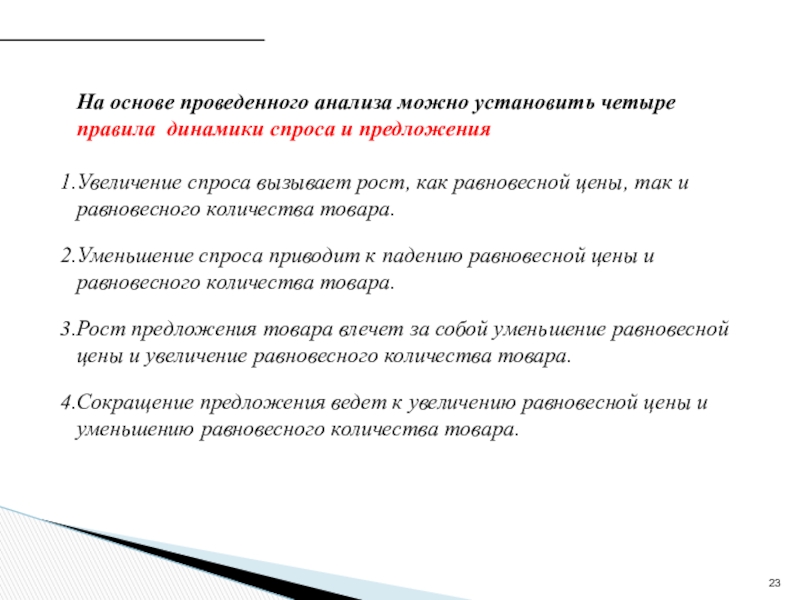 Слайд 23На основе проведенного анализа можно установить четыре правила динамики спроса