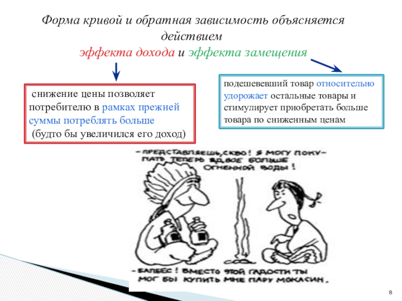 Слайд 8 снижение цены позволяет потребителю в рамках прежней суммы потреблять