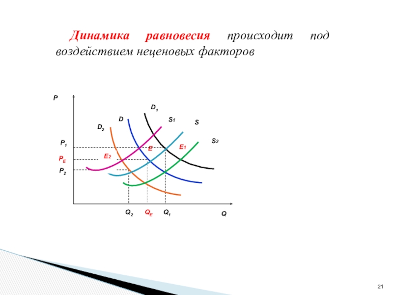 Слайд 21Динамика равновесия происходит под воздействием неценовых факторов