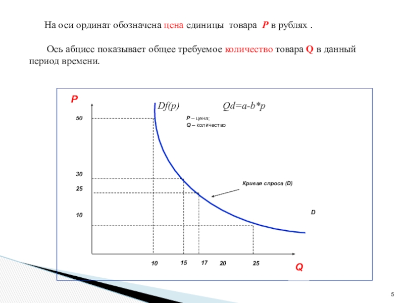 Слайд 5На оси ординат обозначена цена единицы товара Р в рублях