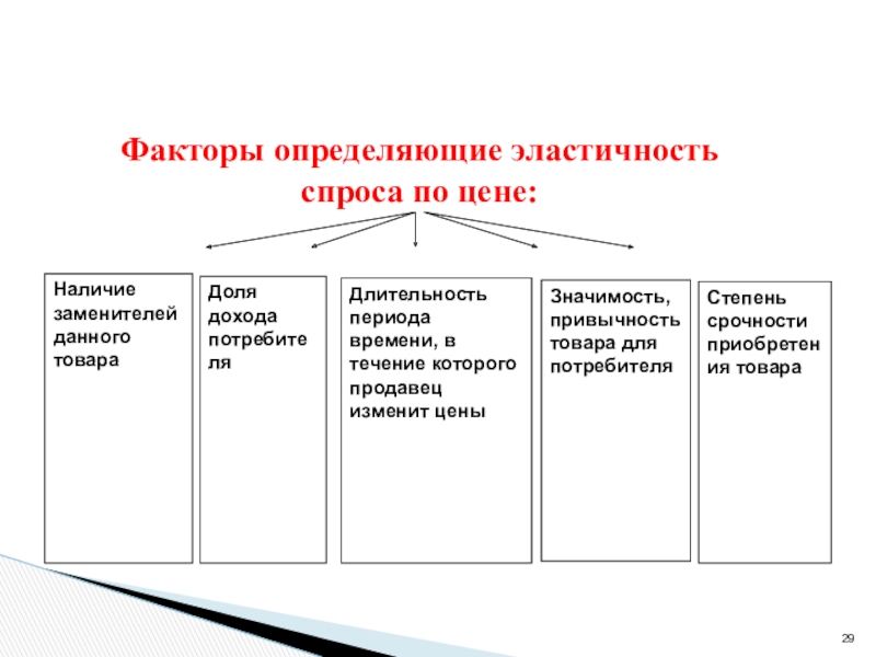 Слайд 29Факторы определяющие эластичность спроса по цене:
