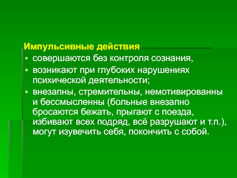 Слайд 51з) Галлюцинаторное возбуждение – развивается под влиянием устрашающих галлюцинаций, часто