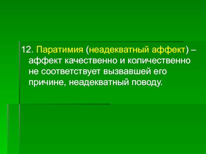 Слайд 2112. Паратимия (неадекватный аффект) – аффект качественно и количественно не