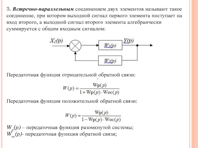 правила последовательного, параллельного и встречно-параллельного (с обратной связью) соединений звеньев, получают эквивалентную передаточную функцию Wэ.