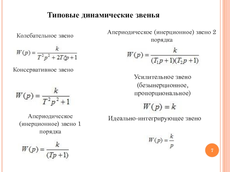 Слайд 7Типовые динамические звенья